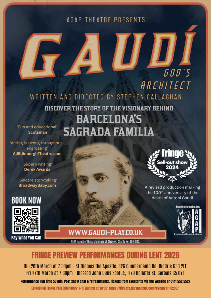 Genius? Madman? Saint? The story of Antoni Gaudí, internationally renowned visionary architect responsible for Barcelona’s towering Sagrada Familia. The sell-out 2024 Fringe show returns with a revised version marking the centenary of Gaudi’s death.